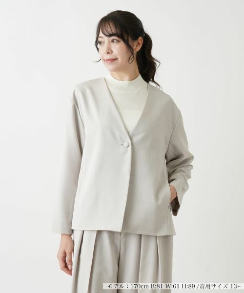 背面のプリーツ素材が他にはないデザインのジャケットです。オケージョンシーズンに大活躍しそう。家庭洗濯不可漂白不可タンブル乾燥不可アイロン低温120℃まで石油系溶剤ドライクリーニング弱ウェットクリーニング不可