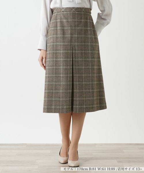 寒くなる季節にぴったりのAラインのグレンチェックスカートです。落ち着いた印象ながらキュートな印象を与えます。