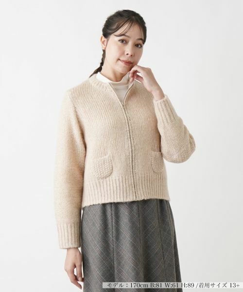 と厚手の編み地が特徴のカーディガンです。