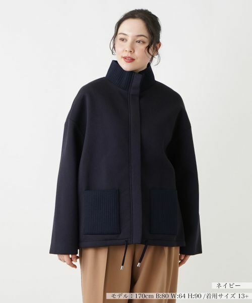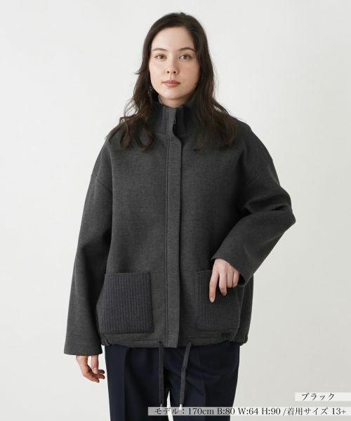 落ち着いたシックな色合いでデザインされた、着回し力の高い比翼ジャケット。襟周りや前ウエストのポケットはニット素材で切り替え、異素材ミックスの表情感がさりげないアクセントに。ドロップショルダーが程よいゆとりを生み出し、リラックス感のある快適な着心地を実現しています。フロントはファスナーによりスムーズな着脱が可能。裾にはドローコードが施され、シルエットを自在に調整できるのも嬉しいポイント。