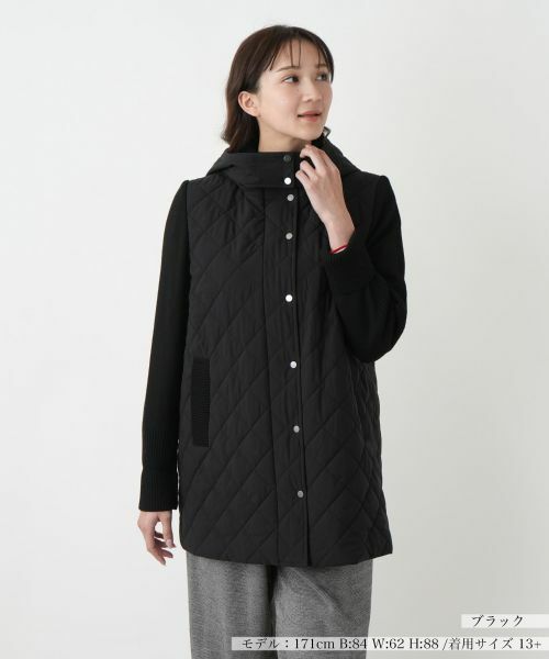中わたを詰め込み、程よくボリュームを抑えつつ、ダイヤモンドキルティングを施したフーデッドコート。ネックや袖はリブニットで切り替え、心地よいフィット感をもたせました。統一感のある落ち着いた色合いで着こなしやすさ抜群。高さのあるネックが首元までさりげなくカバー。すっきりとしたシルエットでカジュアルな中にも洗練された雰囲気を漂わせるアウターです。フードは取り外しでき、2wayでのスタイリングが楽しめます。フロントはスナップボタン×ファスナーのダブルクロージャー仕様。