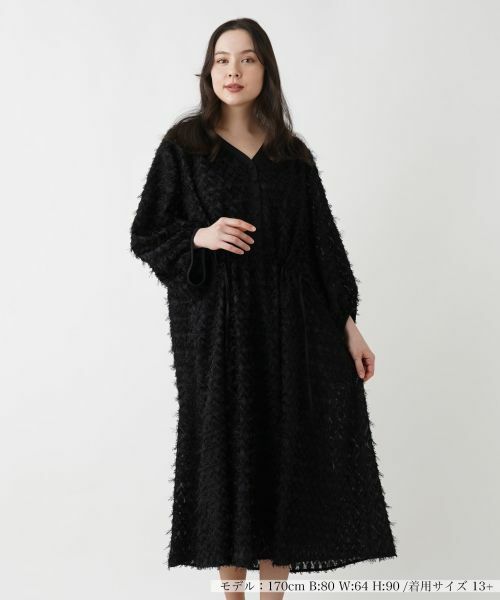 起毛感のある独特な風合いの素材で仕立てた、ボリュームスリーブサックワンピース。柔らかく優雅な生地感が、視覚的にも触感的にも温かみを演出します。ゆったりとしたシルエットは身体のラインを拾いにくく、リラックスした着心地を実現。シャープなネックラインが全体に抜け感を加え、上品さと軽やかさをバランスよく取り入れています。前立てにはくるみボタンをあしらい、さりげなくデザインへのこだわりをアピール。アンダーウェアが付いているため、透け感を気にせず快適に過ごせます。