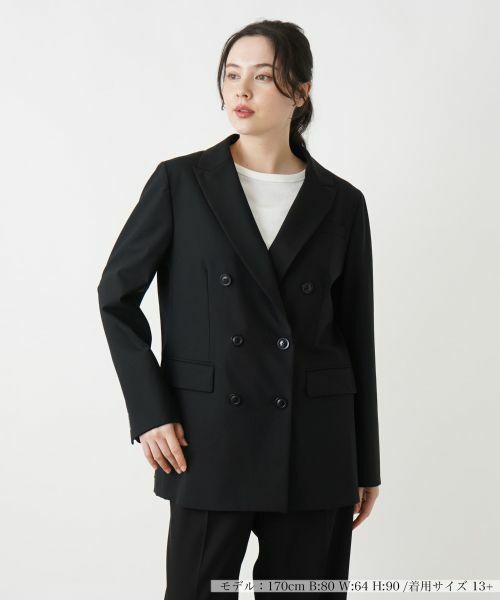 ワイドなピークドラペルが印象的な、メンズライクな雰囲気を纏ったダブルブレステッドのロングジャケット。大胆でありながらも洗練されたラペルデザインが、着こなしに存在感をプラスし、エレガントなスタイルを完成させます。ヒップまでしっかりと隠れる丈感でさりげなく体型をカバーしながら、全体をすっきりと見せる美しいシルエットを演出。後ろ裾は深めのセンターベントでデザイン性とともに動きやすさにも配慮しました。クラシックなディテールとモダンなシルエットが絶妙に融合した一着です。