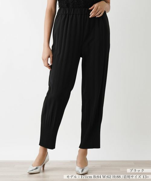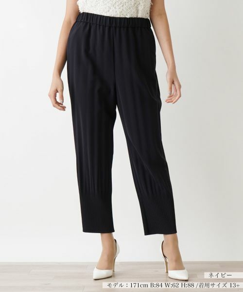 ウエストイージーで履き心地抜群のテーパードパンツ。ストレッチ入りで、たくさん歩き回る日も長時間リラクシーに過ごしていただけます。裾部分にはプリーツを施すことで、足回りをすっきりとした印象に仕上げました。秋冬の厚手のニットやシャツブラウスと合わせてもまとまりやすいアイテムです。
