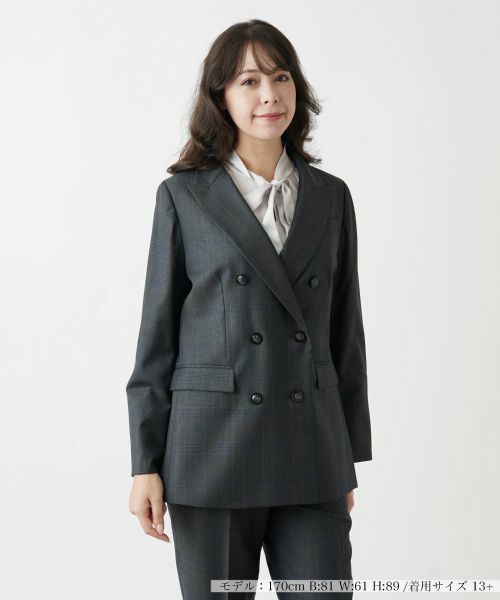 おしゃれなグレンチェック柄のジャケットです。ブリティッシュな雰囲気なのでかっちりとしたコーディネートがおすすめ。家庭洗濯不可漂白不可タンブル乾燥不可アイロン低温160℃まで石油系溶剤ドライクリーニング弱ウェットクリーニング不可