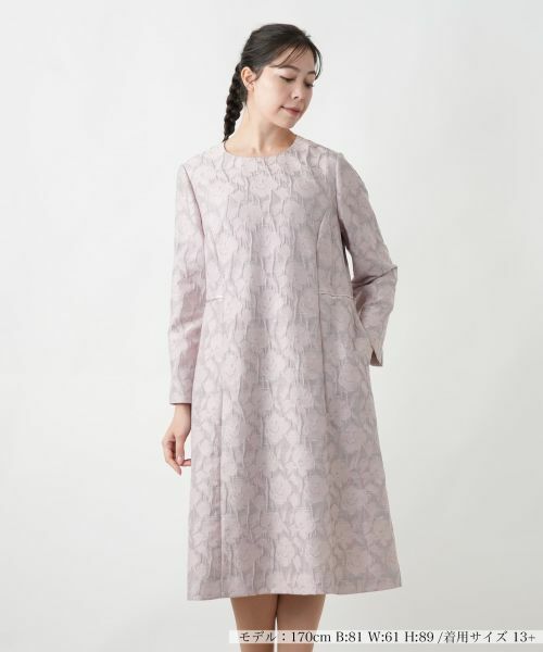 繊細なフラワー模様が、上品かつ華やかなフレアワンピース。こだわりのある柄が、装いに立体感と奥行きを加え、特別感を漂わせます。ネックラインはすっきりと開いたデザインで、顔まわりを明るく見せつつ、絶妙な抜け感をプラス。スカート部分は裾周りに広がりを持たせたシルエットで、動きのある柔らかなラインが加わり、洗練された中にも程よいリラクシーな雰囲気に。カーディガンやジャケットを羽織ってドレスダウンしたりと、シーンや気分に応じたアレンジも自在。スリット入りの袖口は折り返してのアレンジが楽しめます。バックファスナーにより着脱が可能。