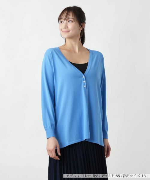 ハイゲージで丁寧に編み上げた、セミロング丈のニットカーディガン。ソフトで肌触りのよい素材感が優しい着心地を実現します。薄手ながらもしっかりとした編み地で上品な印象を与えるデザインです。フロントには光沢感のあるパール調ビジューのボタンをあしらい、さりげない華やかさをプラス。ヒップまで隠れる絶妙な丈感が体型カバーを叶えつつ、スタイリッシュなシルエットを演出。通勤やオフィスシーンから休日のリラックススタイルまで幅広く対応する一枚です。