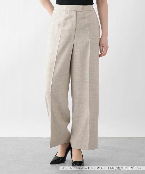 センタープレスが縦のラインを強調。広がりすぎないセミワイドシルエットでレッグラインをカバーしつつ、すっきり見せを叶えるフルレングスパンツ。毛をブレンドした上質なテキスタイルで仕立てているから、長く愛せる1品となってくれるはず。※定価(税込)は、2022年06月29日のセール開始前の店舗における販売価格です。家庭洗濯不可漂白不可タンブル乾燥不可アイロン低温160℃までドライクリーニング可ウェットクリーニング不可