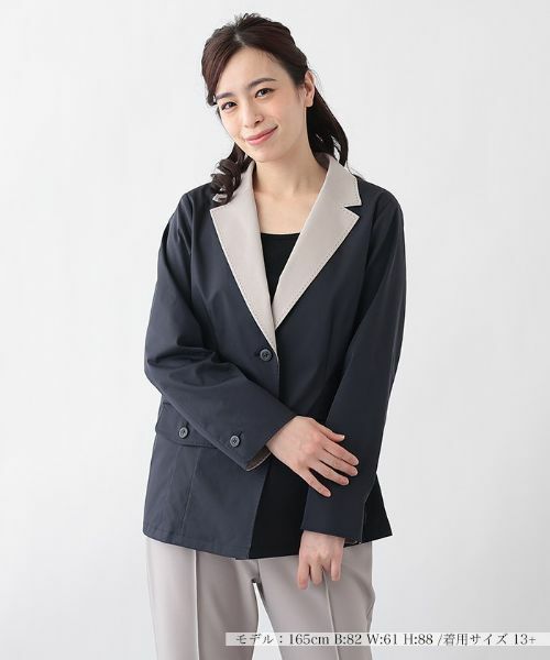 テーラードカラーを配色にすることで、顔周りをよりハンサムに引き立たせたジャケットです。前立てやポケットフラップの裏までツートーンにするこだわり。大人の遊びゴコロがくすぐられる1着です。※定価(税込)は、2022年06月29日のセール開始前の店舗における販売価格です。家庭洗濯不可漂白不可タンブル乾燥不可アイロン低温120℃まで石油系溶剤ドライクリーニング弱ウェットクリーニング不可