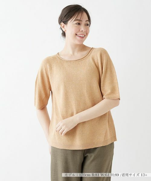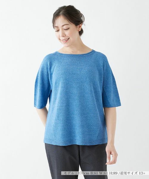 春夏スタイルにぴったりの爽やかな素材感が心地いい半そでニットプルオーバー。つかず離れずのシルエット&無地デザインで、バツグンの着まわし力を発揮。パンチの効いた柄ボトムスと難なく合わせられる1着です。※定価(税込)は、2022年06月29日のセール開始前の店舗における販売価格です。家庭洗濯不可漂白不可タンブル乾燥不可アイロン低温120℃まで石油系溶剤ドライクリーニング弱ウェットクリーニング不可