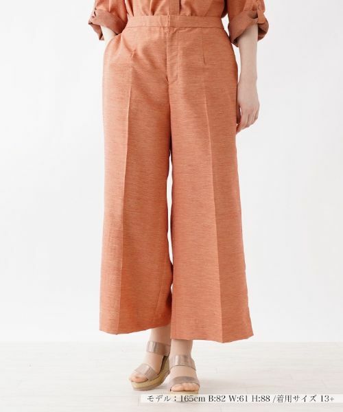 美しいカラーリングがコーディネートを印象的に彩るワイドパンツ。足首が覗くアンクル丈だから、軽やかさも意識した着こなしが楽しめます。センタープレスですっきりとキレイめに仕上げた、オフィスやよそ行きシーンにもオススメの1品。