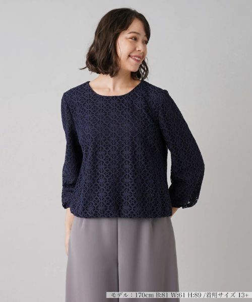 シンプルな丸首に七分袖という初秋向けの綺麗めのレースブラウス。ネックラインはすっきりと浅めに開き、上品なニュアンスに。ウエストはゴム仕様なので、着るだけでごろつきや崩れを気にしなくてよい安定感のある1枚。スカートにもパンツにも合わせやすく、コーディネートの幅を広げてくれそうです。