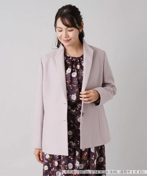 シャープな形状のイタリアンカラーの襟がデザインポイントになったジャケット。Super120’sの上質な大津毛織の糸を使用し、艶のあるなめらかな表面感に仕上げました。ソフトな風合いと軽やかな着心地が魅力の一着です。フロントにはマーブルボタンをあしらい、さりげなくこだわりを感じさせるエッセンスをオン。ウエスト両サイドにシンプルなポケットをバランスよく配しています。オンオフを選ばず、幅広いシーンで活躍してくれるアイテムです。