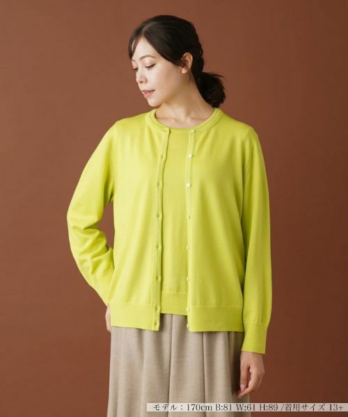 滑らかな肌触りのハイゲージニットで仕上げたクルーネックカーディガン。浅めのネックラインが上品かつ落ち着いたニュアンスを感じさせます。フロントは光沢を放つ貝調ボタンがエレガントなアクセントに。余計な装飾のないシンプルなデザインでトレンドに左右されず、オフィスからプライベートまでシーンを問わずに活躍するアイテムです。