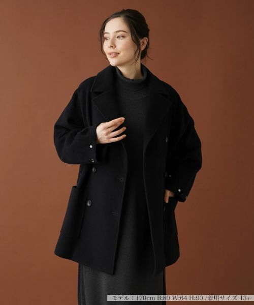秋冬らしい表情を見せるマーブルボタンをダブルブレステッドで配した、ベーシックなミディ丈のテーラードコート。厚手のメルトン生地を使用し、温かく優しい着心地を叶えました。シルエットはドロップショルダーで程よいリラックス感をもたせ、肩肘張らないリラクシーな雰囲気に。前ウエスト両サイドにはシンプルなスクエアポケットをバランスよくレイアウトしています。袖口の開きはスナップボタンにより調整が可能。