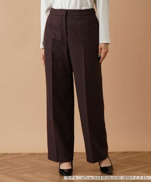 秋冬らしい深みを感じさせるヘリンボーンツイード生地で仕立てたストレートパンツ。程よくゆとりをもたせたリラックスシルエットながらも、センタープレスを施すことでスマートさも忘れないルックスに。シンプルなカットソーやニットとのコーディネートはもちろん、レースブラウスを合わせてフェミニンにまとめるのも素敵。ホック&スナップボタン、ファスナーにより開閉が可能です。