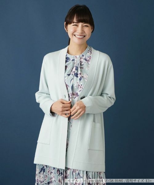 煌めくラメを散りばめたリュクス感溢れるデザインのカーディガン。大きめの貝調ワンボタンが存在感を放ち、ひと味違ったアクセントに。シャープなVネックが絶妙なバランスの抜け感を演出。ドロップショルダーで袖にゆとりをもたせつつ身頃にもリラックス感を作り、ゆったりと着られるビッグシルエットで仕上げました。前ウエストにバランスよくパッチポケットをレイアウト。シンプルな無地で幅広いコーディネートに合わせやすいのも嬉しいポイントです。