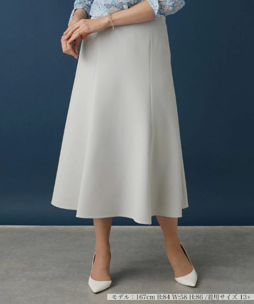 ベーシックな無地デザインで仕上げた、膝下ミモレ丈のフレアスカート。腰周りをすっきりとさせており、ヘムラインに向かって軽やかに広がるシルエットが女性らしさを際立たせます。落ち着いたカラーでトップスを選ばずに合わせやすく、ワードローブに一枚あると重宝しそうなアイテムです。スナップボタン、ホック&ファスナーにより開閉が可能。------------------------------------着用シーズン:初夏 伸縮性:なし透け感:なしポケット:あり生地の厚さ:やや薄手お取扱い方法:ウォッシャブル(手洗い可)裏地:ありウエスト:伸縮性あり-------------------------------------※商品の色味は、撮影場所や光のあたり具合、お客様のお使いの機器により色味が違って見える場合がございます。予めご了承ください。手洗い可酸素系漂白可タンブル乾燥不可つり干し(日陰)アイロン低温120℃まで石油系溶剤ドライクリーニング弱ウェットクリーニング(弱い処理)