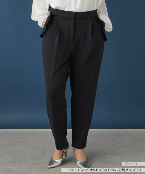 サイドポケットにあしらったフリルがほんのりフェミニンな表情を見せるセンタープレスパンツ。タックテーパードに仕上げた、すっきりとしたシルエットが美しいデザイン。カラーブラウスなどをインして、きれいめにまとめてみたい。