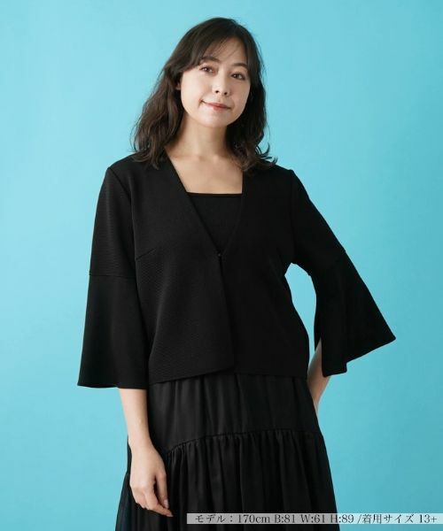 これからのシーズンらしい抜け感と軽やかさが魅力のショート丈Vネックカーディガン。袖口のデザインを巧みに切り替えることで、優雅に広がるベルスリーブを実現しました。緻密に計算されたシルエットも相俟って、さりげなく品格が薫るスタイリングを演出。大人の女性らしいシックなカラーでインナーやボトムスとのコーディネートも自在に楽しめます。フロントは鍵ホックを採用しており、スムーズな開閉が可能。