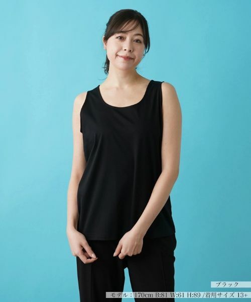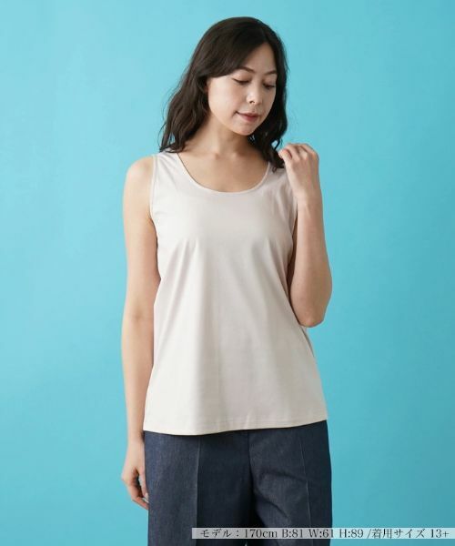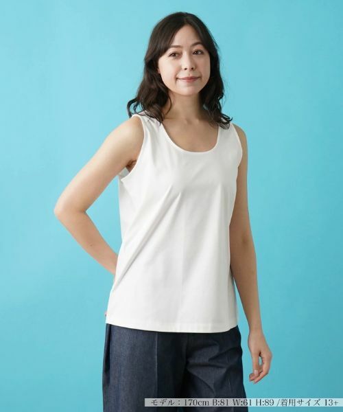 薄手の滑らかな生地の風合いが美しいノースリーブカットソー。コットン100%の軽やかな生地を使用した、着心地の良さが魅力のアイテムです。シアーなブラウスやカーディガンなどのインナーに活躍してくれるはず。