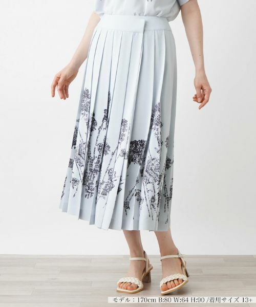 端正な表情のプリーツがスタイリングに気品をもたらす、優雅なAラインシルエットのロングスカート。モダンアートのようなタッチで描かれたフラワー柄のプリントがドラマティックな雰囲気を演出。華やかな柄と美しいプリーツのラインが絶妙にマッチし、特別な日のお出かけやパーティーシーンでも注目を集めること間違いなしのアイテムです。一枚で着こなしの主役になるだけでなく、お揃いの柄のキャミソールやブラウスを合わせれば、セットアップ風のコーディネートも楽しめます。