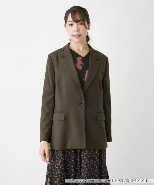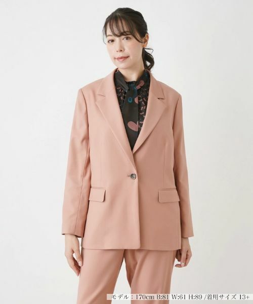 マニッシュな雰囲気を引き立てる、スタイリッシュなデザインのテーラードジャケット。端正なフォルムのカラー&ラペル、程よくシェイプされたウエストが美しいシルエットを演出。素材にはレーヨンとポリエステルをブレンドした、やや薄手の上品な風合いの生地を使用し、滑らかな手触りと快適な着心地を実現しています。後ろ裾はセンターベント仕様で、動きやすさを追求しました。ビジネスシーンからオケージョンまで、様々なシーンで活躍する一着です。