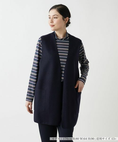 表裏でテイストが異なる、リバーシブル仕様で楽しめるVネックベスト。シャープなネックラインが顔周りをすっきりと引き立て、これからの季節のカジュアルなコーディネートにスマートさをプラス。ヒップまで隠れる絶妙な丈感がさりげなく体型をカバーしながら、すっきりとしたシルエットをメイク。気分やスタイリングに合わせて着こなしの幅が広がり、自在に上級者らしいアレンジを楽しめるアイテムです。