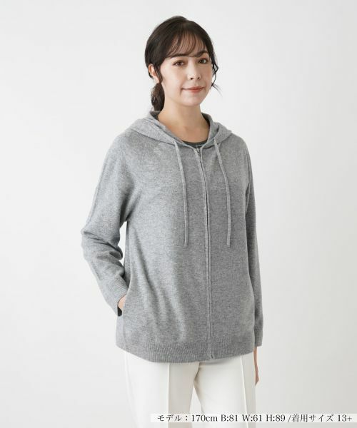 ウールカシミヤの柔らかい糸を使用したホールガーメントのニットパーカ。ポケットも縫い代のない編み続きで作られている凝った作りです。上品なカジュアルスタイルが楽しめます。
