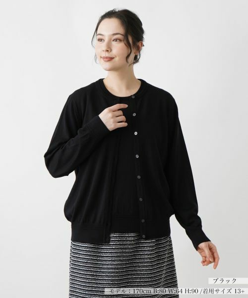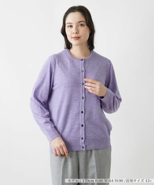 ハイゲージで丁寧に編み込まれた、シックな色合いのクルーネックカーディガン。心地よく寄りそうようなすっきりとしたシルエットで上品に着こなせます。美しい光沢を放つ貝調ボタンがさりげないアクセントに。オフィスから週末のお出かけまで幅広いシーンで活躍してくれそうな着回し力抜群のアイテム。定番のパンツでまとめるのはもちろん、フェミニンなロングスカートを合わせたきれいめのコーディネートにもおすすめです。