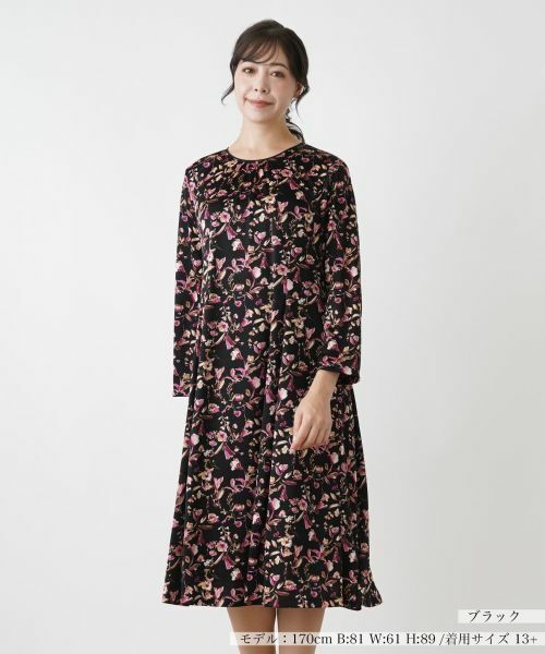 絵画を思わせる手描き風のフラワー柄をプリントした、ミディアム丈のフレアワンピース。ふわりとした広がりのある美しいシルエットも相俟って大人フェミニンな雰囲気を演出。ネックラインにはすっきりと開きをもたせており、絶妙なバランスの抜け感を作り出します。生地には程よい伸縮性があるので身のこなしもスムーズに。バックネックの涙あきはボタン開閉が可能。足元はパンプスでまとめると季節らしいシックな印象に仕上がります。