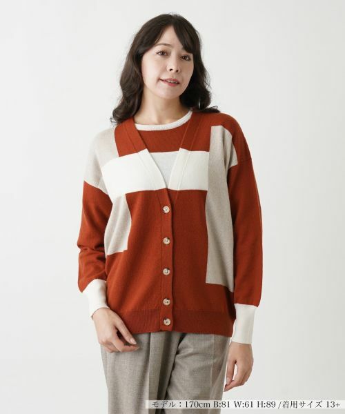 遠目からでもインパクトを放つ、カラーブロックデザインのVネックカーディガン。シャープに開いたネックラインが絶妙なバランスの抜け感を作り出します。表情のあるマーブルボタンを採用し、秋冬シーズンらしいエッセンスをプラス。シルエットにはゆとりをもたせ、リラクシーな着心地を叶えました。ニットやカットソーとも合わせやすく、上級者らしい技ありのレイヤードスタイルを後押ししてくれる一枚です。