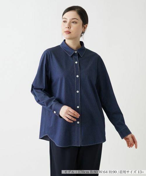 肩ラインをやや落とした、リラックス感のあるシルエットのブラウス。コットンにポリエステルをブレンドしたやや薄手の生地を使用。ステッチワークが味わい深い表情を漂わせるアクセントに。バックにはギャザーを施すことで柔らかなニュアンスを醸し出しています。後ろ裾をやや長めに設定しているので体型カバーもさりげなく行えます。スポーティなパンツルックはもちろん、スカートを合わせた大人フェミニンなスタイルにもマッチ。