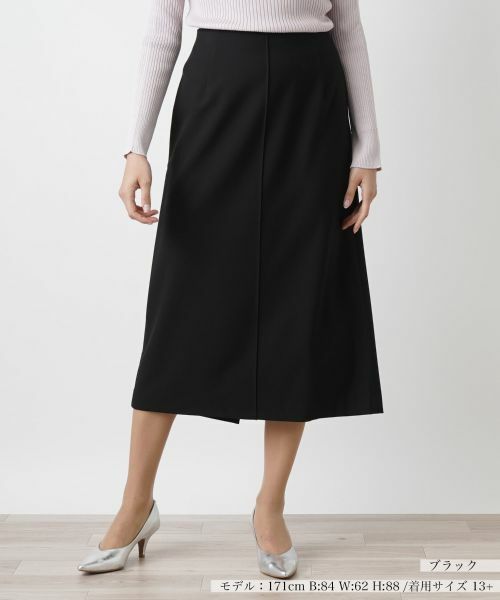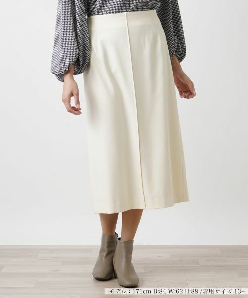上品で女性らしいシルエットで、カジュアルからオフィススタイルまで幅広いシーンで活躍するアイテムです。ブーツやパンプスとの相性も良く、トップスをインして着こなすとさらにエレガントな雰囲気が引き立ちます。【サイズ表記について】