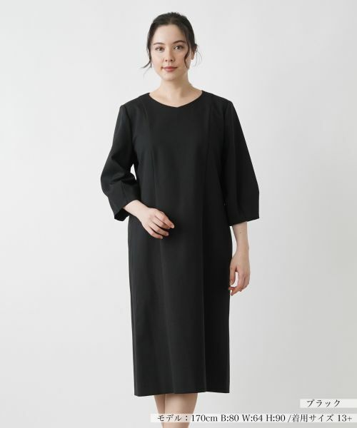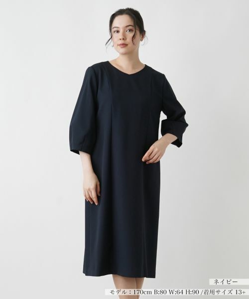 落ち着いたシックな色合いでデザインした、ミディアム丈のサックワンピース。ふんわりとしたクロップド丈のバルーンスリーブがリラクシーな印象を与え、ストレスフリーの着心地を実現します。浅めのVネックがデコルテをキレイに覗かせます。一枚での着こなしはもちろん、カーディガンやジャケット、コートとのレイヤードスタイルにもおすすめです。バックファスナーにより着脱が可能。