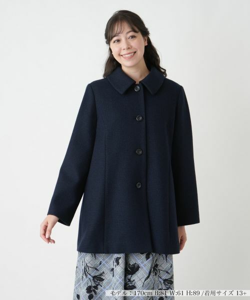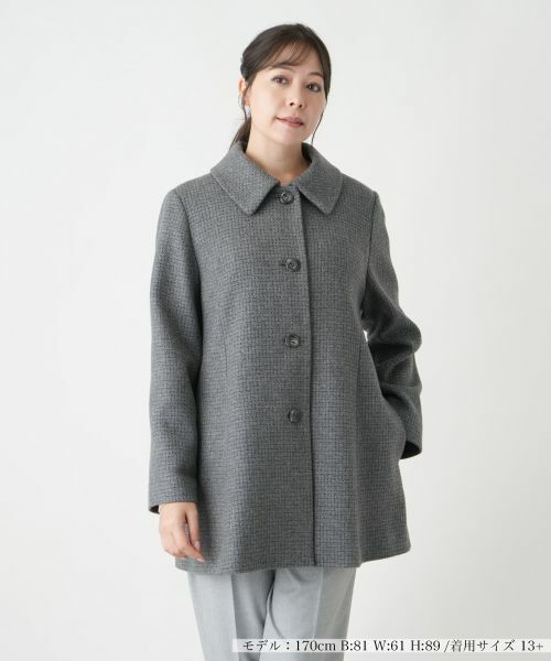 カシミヤ生地を贅沢に使用した、軽快なステンカラーのショートコート。カジュアルさと上品さが絶妙に調和し、洗練された雰囲気を演出します。落ち着いた色合いでコーディネートしやすく、デニムやワイドパンツに合わせたリラックスしたデイリールックから、スカートやスラックスでまとめたきちんと感のあるオフィススタイルまで多彩な着こなしに対応します。週末のお出かけや軽いアウターが必要な場面でも活躍する、着回し力抜群の一着です。