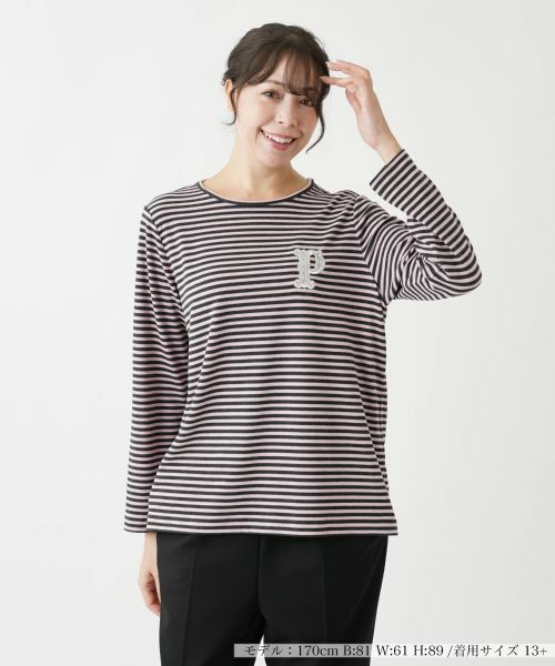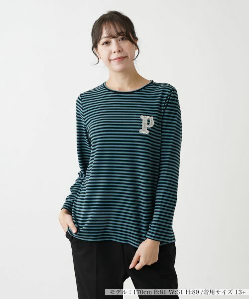 シンプルなボーダーが描かれたクルーネックプルオーバー。柔らかな生地を使用し、すっきりとしたシルエットでデザインしています。左胸には刺繍とラインストーンが煌めくディテールで、さりげなく個性を引き立てるユニークなアクセントに。ベーシックな無地のパンツはもちろん、フェミニンなスカートとの相性もよく、女性らしさを意識したスタイリングも楽しめます。定番ながらも洗練されたデザインで、日常のコーディネートに取り入れやすい一枚です。