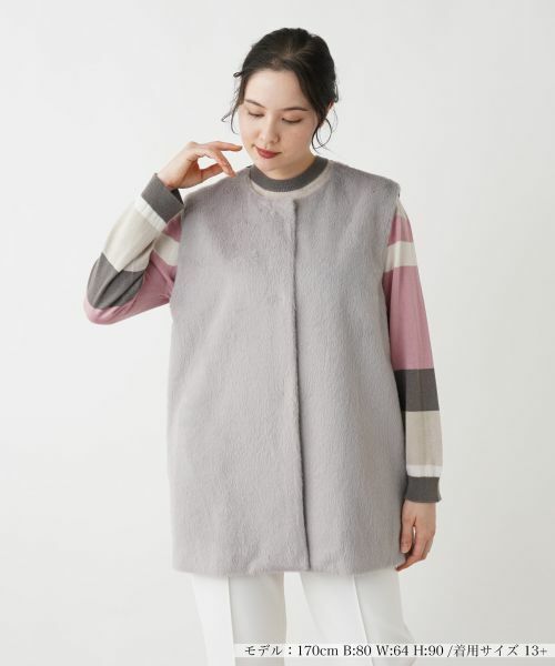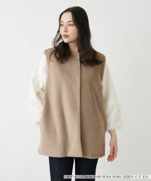 起毛感のあるヘアリーな素材と、柔らかくマットな素材をフロント&バックで切り替えたロングベスト。シンプルなトップスに重ねるだけで、一気に上級者らしいレイヤードスタイルが完成。すっきりとしたIラインシルエットが全体を引き締め、上品でスマートな印象を演出します。フロントはスナップボタン仕様になっており、開閉がスムーズで実用性も兼ね備えています。洗練されたコーディネートを求める大人のワードローブに欠かせない一着です。
