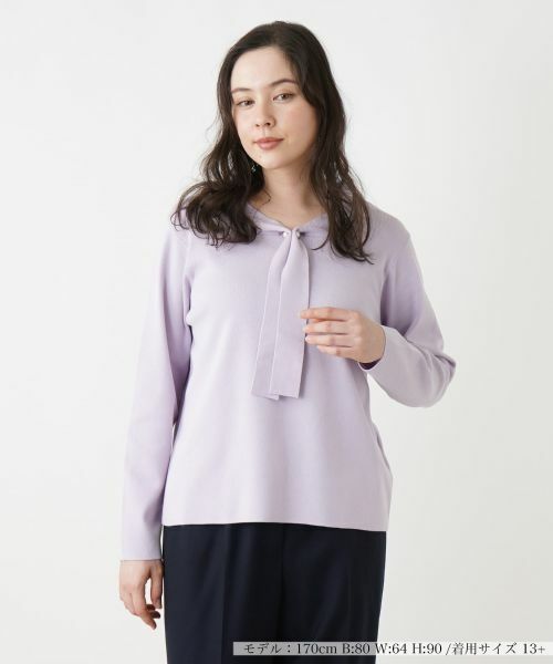 大人の女性らしい清楚な印象を与える、ボウタイニットプルオーバー。ネック中央のボウタイ両脇にあしらったパール調ビジューがアクセントに。シルエットには程よくゆとりをもたせ、リラクシーな着心地を叶えました。定番のベーシックなパンツでまとめるのはもちろん、ミモレスカートを合わせたフェミニンなスタイルとも好相性。オンオフのシーンを選ばず、フレキシブルに活躍してくれそうなトップスです。