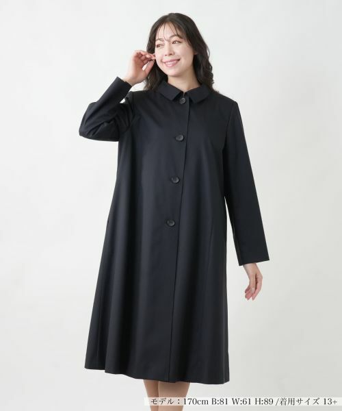 シンプルで上品なデザインのAラインコート。フロントのボタンがアクセントとなり、クラシカルな雰囲気を演出します。ゆったりとしたシルエットで、体のラインを拾わずエレガントな印象を与えます。軽やかな素材感で、季節の変わり目にも活躍する一枚。シンプルながらも洗練されたデザインは、フォーマルからカジュアルまで幅広いシーンで着用可能。長めの丈感が大人っぽく、落ち着いた印象を与えるアイテムです。※定価(税込)は、2025年6月27日のセール開始前の店舗における販売価格です。家庭洗濯不可漂白不可タンブル乾燥不可アイロン低温160℃まで石油系溶剤ドライクリーニング弱ウェットクリーニング不可