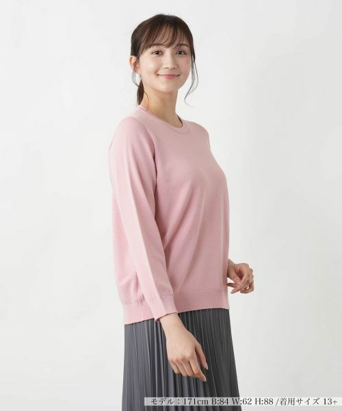 大人の洗練されたスタイリングにぴったりのクルーネックニットプルオーバー。コットンにアセテート、ナイロンをブレンドし、ハイゲージで丁寧に編み込むことで、滑らかで繊細な肌触りを実現しています。すっきりとしたシルエットがボディラインを美しく引き立て、カジュアルにもきれいめにも合わせやすいデザインとなっています。パンツやスカートとの相性も抜群よく、薄手ながらしっかりとした編み地はアウターのインナーにも最適。------------------------------------着用シーズン:初夏伸縮性:あり透け感:色によりありポケット:なし生地の厚さ:やや薄手お取扱い方法:ウォッシャブル(手洗い可)裏地:なし-------------------------------------※商品の色味は、撮影場所や光のあたり具合、お客様のお使いの機器により色味が違って見える場合がございます。予めご了承ください。手洗い可漂白不可タンブル乾燥不可つり干し(日陰)アイロン低温160℃までドライクリーニング可ウェットクリーニング(弱い処理)