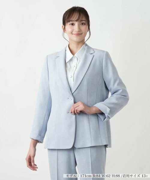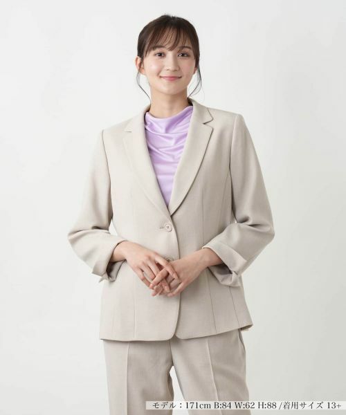 クラシックなデザインながら現代的なエッセンスを取り入れた、上品な佇まいを引き立てるテーラードジャケット。存在感のあるカラー&ラペルが顔まわりを華やかに演出し、全体のスタイリングをぐっと格上げしてくれるのがポイント。巧妙なパターンメイクにより、ボディラインを美しく引き立てる計算されたシルエットを実現しています。肩やウエストのラインが程よくフィットし、羽織るだけでエレガントかつ洗練された印象を与えます。スリット入りの袖口は折り返してのアレンジも可能。週末のお出かけからオフィス、セレモニーまで幅広いシーンで活躍する一着です。