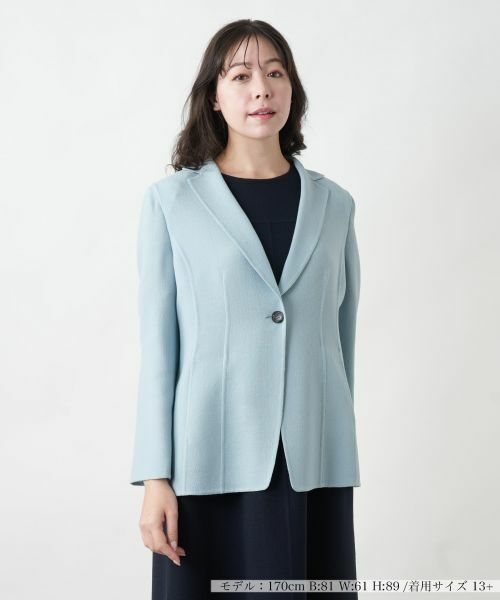 エレガントで洗練されたデザインのテーラードジャケット。シンプルながらも美しいシルエットを演出する立体的なパターンが特徴です。ウエストラインをさりげなく引き締める切り替えが施され、スタイルアップ効果も期待できます。シングルボタンのフロントデザインが上品で、オフィスやフォーマルなシーンにも最適。柔らかく程よい厚みのある素材で、着心地の良さも魅力です。同素材のワンピースとセットで着用すれば、より洗練された印象に。