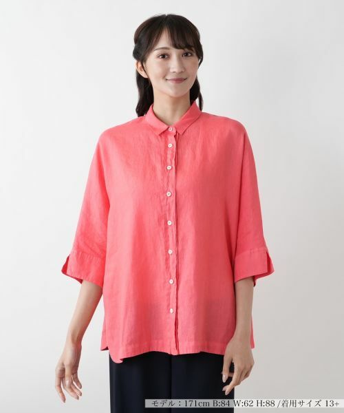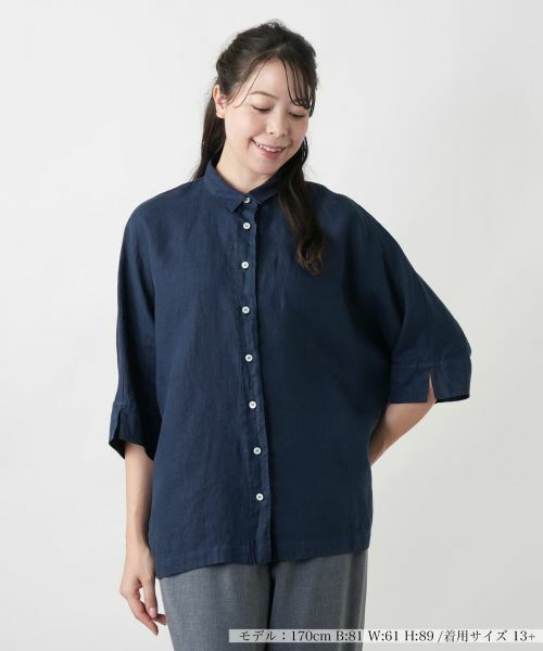 さらりと涼やかな麻素材を使用し、肌離れのよい軽やかな着心地に仕立てたブラウス。身体のラインを拾わないボクシーなシルエットが柔らかなドレープを描きます。クロップド丈のドルマンスリーブに加え、袖口と裾には控えめなスリットをプラス。シンプルな中に程よい抜け感を宿し、装いにこなれた表情を与えます。前だけをタックインして着こなせば、スタイルアップ見せ効果も抜群。きちんと感とリラックス感、その両方を叶える一枚です。