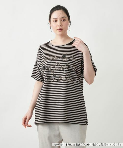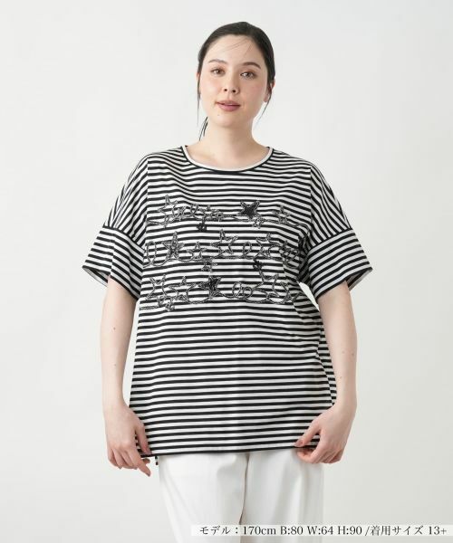 細やかなピッチのボーダーが表情を添える、リラックスフィットのカットソー。ゆとりを持たせたシルエットも相俟って、軽やかで抜け感のあるスタイリングを叶えます。フロントはスパンコールであしらわれたコード刺繍が存在感を放ち、程よい華やかさと遊び心をプラス。裾にはサイドスリットを施し、動きやすさとともに着こなしに自然なメリハリを添えました。シンプルな中に個性が光る、デイリーカジュアルに映える一枚です。