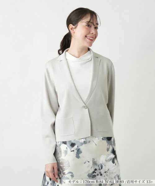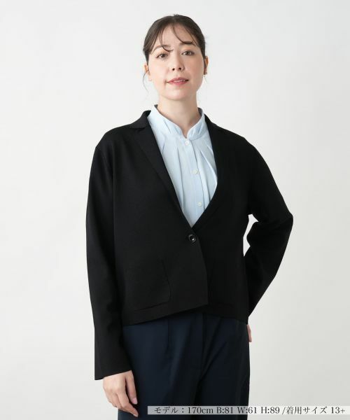 緩やかなカーブを描くラペルが、優しく上品なニュアンスを添えるニットジャケット。程よいきちんと感がありながらも、ニット素材ならではの軽やかさと快適さが感じられる一枚です。すっきりとしたコンパクトなシルエットで、身体のラインに程よく沿いながらスマートな印象を演出。動きやすさも備えつつ、美しいフォルムをキープします。パンツを合わせたベーシックなスタイルはもちろん、スカートでまとめたフェミニンルックもおすすめです。