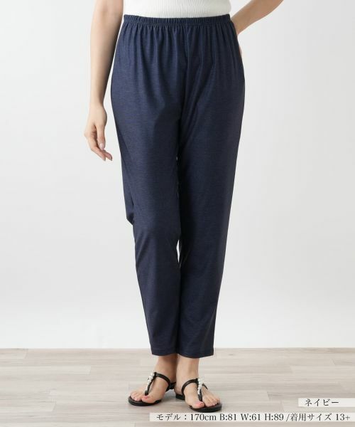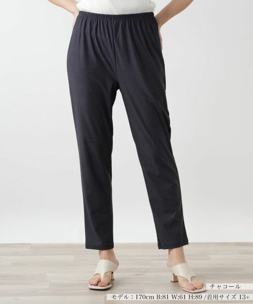 快適なはき心地を追求した、ストレッチ素材を使用したカジュアルなレギンス。柔らかく伸縮性に優れた素材が、身体にほどよくフィットしながら動きやすさをキープ。長時間の着用でもストレスを感じさせない一本です。股上はやや深めにデザインされており、ウエストやヒップ周りに程よいリラックス感をプラス。安心感のあるフィット感が、自然な体型カバーを叶えつつ快適なはき心地を実現します。ウエスト部分はゴム仕様になっているため、締め付けすぎることなく、心地よくフィット。体型を問わず馴染みやすい作りが嬉しいポイントです。