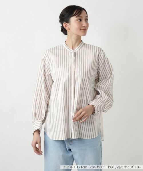 ストライプ柄が爽やかで上品な印象のブラウス。
