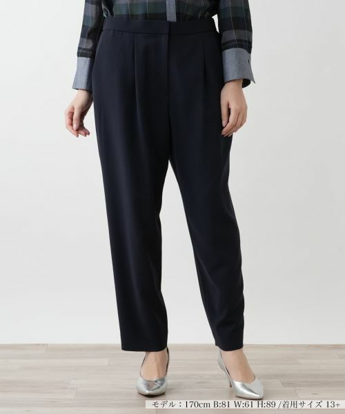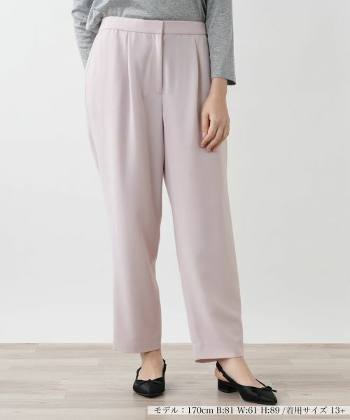 緩やかなテーパードシルエットを描き、すっきりとした佇まいを後押しするアンクル丈のワンタックパンツ。フロントに入れたタックが立体感を生み出しながらも、シンプルかつ洗練されたデザインに。ウエストは総ゴム仕様で心地よいフィット感を実現。スナップボタン&ホック、ファスナー開閉により、着脱しやすさとスマートなルックスを両立しました。軽やかなブラウスやニットと合わせれば、抜け感のある大人のリラックススタイルに仕上がり、オンオフ問わず活躍する一本です。
