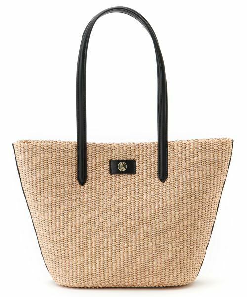 ナチュラルな風合いの素材を編み込み、上品な仕上がりを叶えたトートバッグ。フロント中央にはさりげなくブランドのロゴをあしらい、シックなアクセントをプラス。バッグ内部には小物を整理しやすいポケットを備え、機能性にもこだわりました。軽量で持ちやすく、デイリーはもちろん、リゾートやお出かけシーンにも活躍するアイテムです。